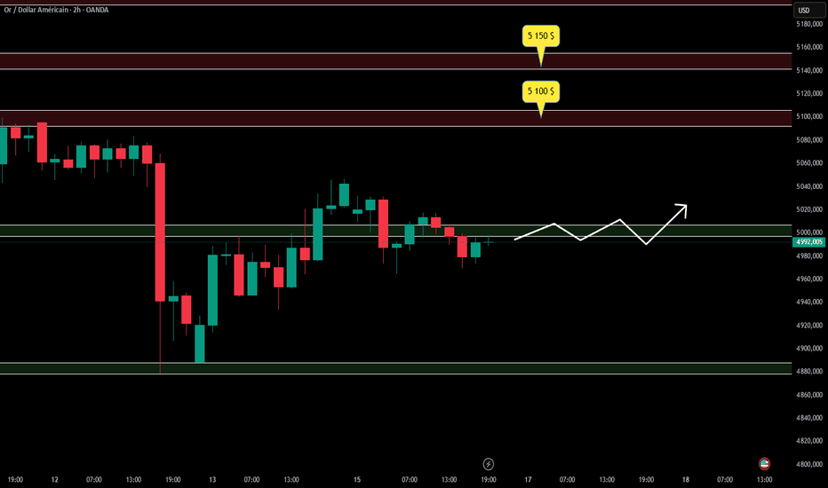OR (XAUUSD) | L’ANALYSE DU JOURAnalyse technique : L'Or reste lourd en ce début de semaine. Le fait de voir le prix évoluer durablement sous la barre des 5000 - 5100 confirme ma thèse de "nettoyage" de la liquidité acheteuse. Malgré un Dollar Index (DXY) qui montre des signes de faiblesse sous les 97.000, le métal jaune ne parvi