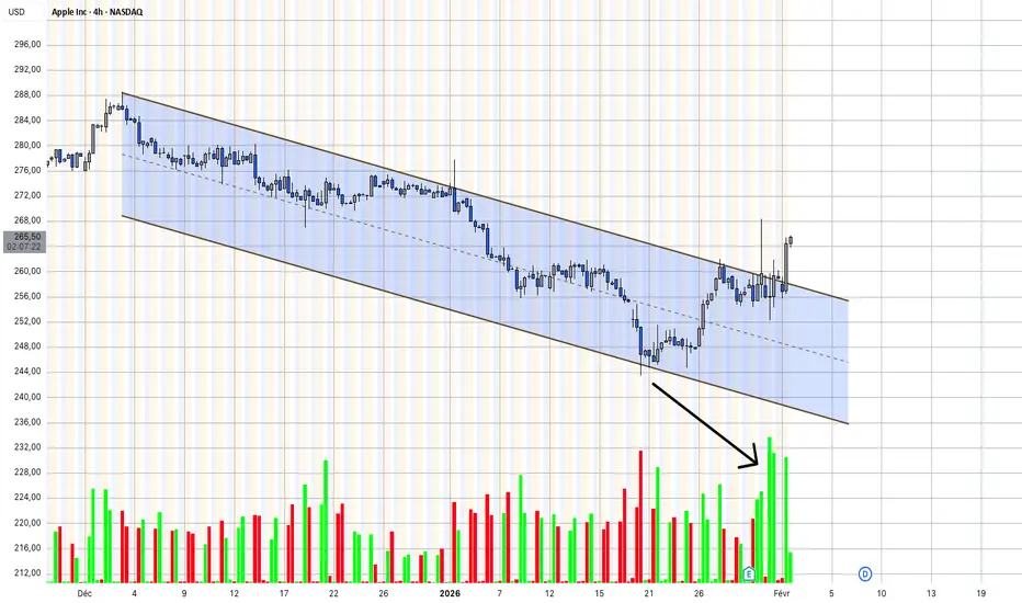 L’action Apple (AAPL) vient de casser avec force son couloir baissier, marquant un changement clair de dynamique. Cette sortie par le haut confirme le retour des acheteurs et indique que le marché se dirige désormais vers des niveaux plus élevés. 🔥