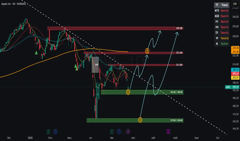 📉 Impact immédiat sur AppleSuite à cette annonce, l'action d'Apple (AAPL) a chuté de 2,6 %, effaçant environ 70 milliards de dollars de capitalisation boursière . Actuellement, le titre se négocie autour de 195,27 $ .