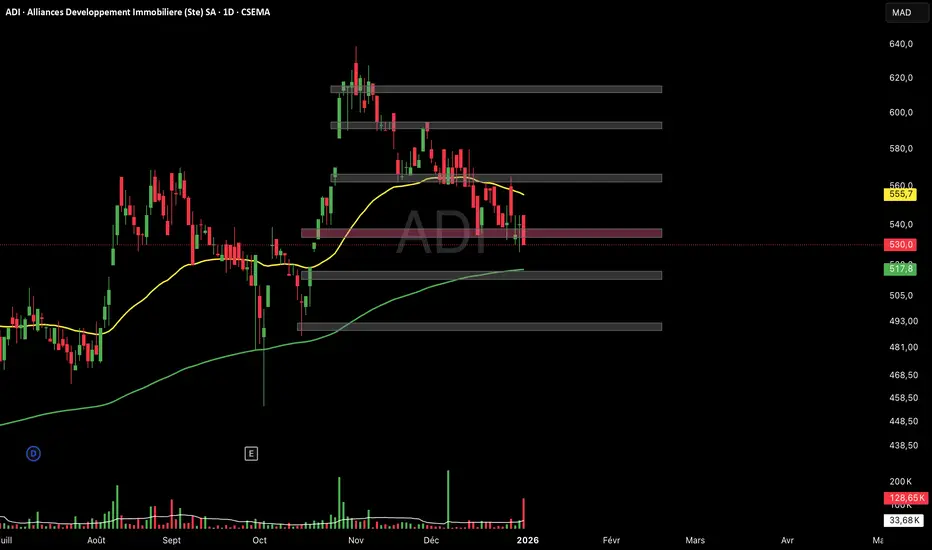 Les bandes grises et la bande rouge sont les principaux niveaux à surveiller pouvant constituer des niveaux potentiels d'entrée et de sortie.