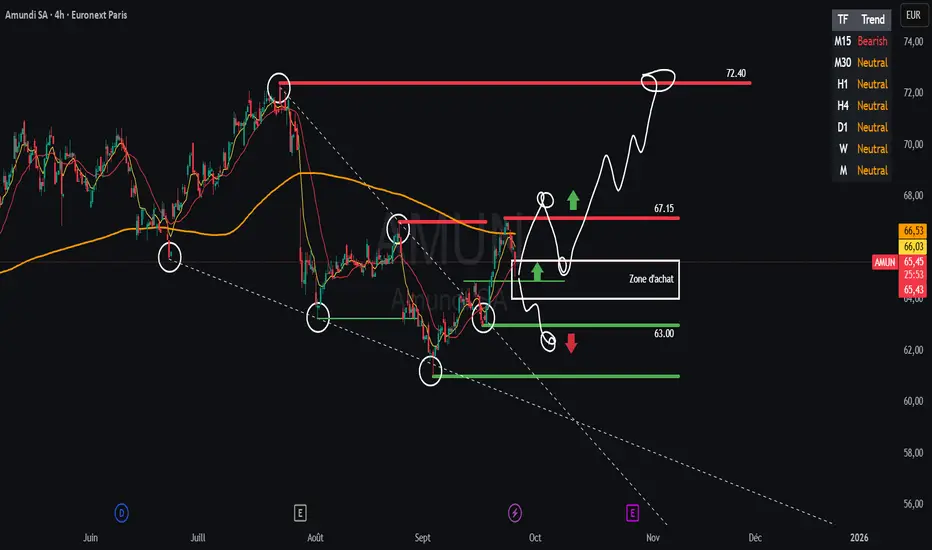 Premier objectif technique : 72,40 €, correspondant au dernier plus haut de juillet 2025.