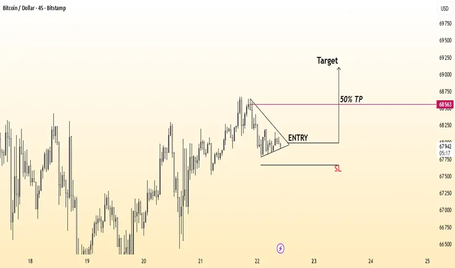 Suivie d’un retracement contrôlé formant une consolidation descendante serrée.