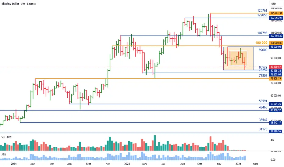 Le pire des scénarios serait que les acheteurs ne soient pas au rendez-vous autour des 73800. Dans ce cas, le Bitcoin va chuter plus profondément avec pour objectif, les 53591, et une perte de plus 50% de sa valeur.
