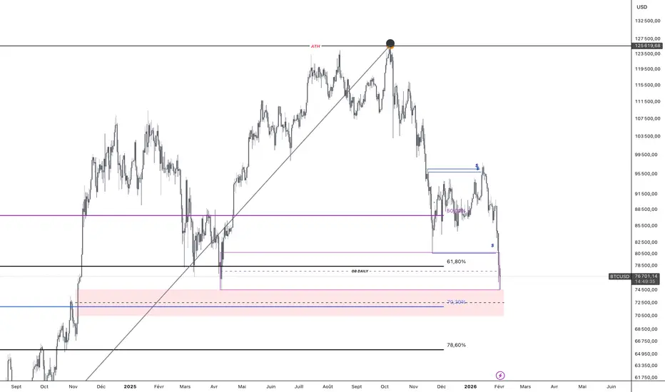 Je reste patient sur une réaction claire entre les 76 - 78 000$ pour prendre un achat.