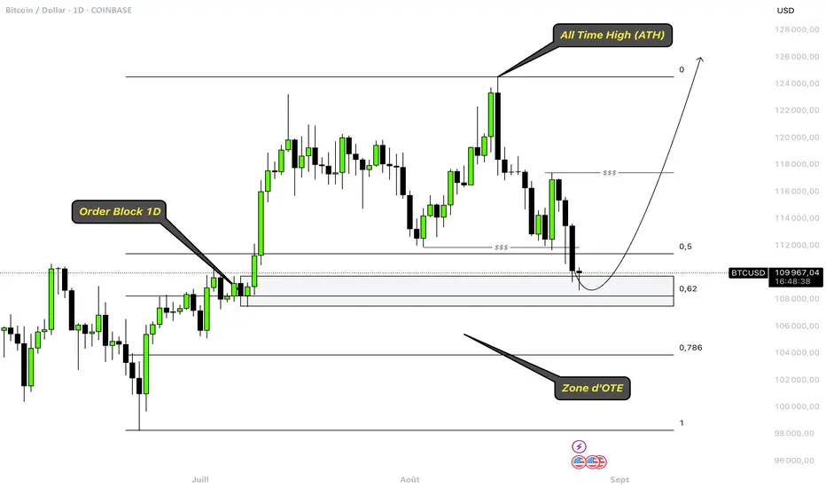 De plus, nous sommes revenus sur un MAGNIFIQUE Order Block en Daily, situé les 0.62 de Fibonacci, à l'entrée de la zone d'OTE (Optimal Trade Entry).
