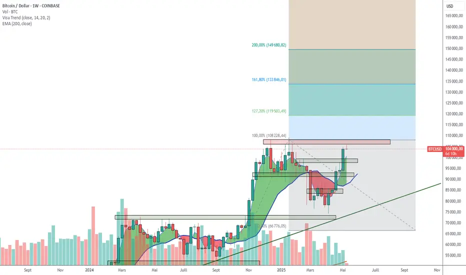 J'ai prix comme base la mèche basse du chandelier qui avait permis la cassure de la dernière grande de résistance des 73680$ et le niveau des 108 000$