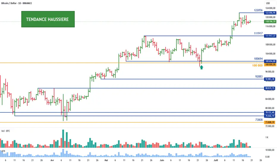 Le BITCOIN fait de nouveau une pause. Un retest des 122056 ou des 111917 permettrait de connaître la prochaine direction du marché.