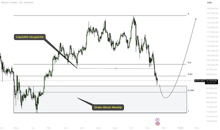 👀 Pour moi, on se dirige tout droit vers la zone des 85000$, sur laquelle se trouve un magnifique Order Block en Weekly.