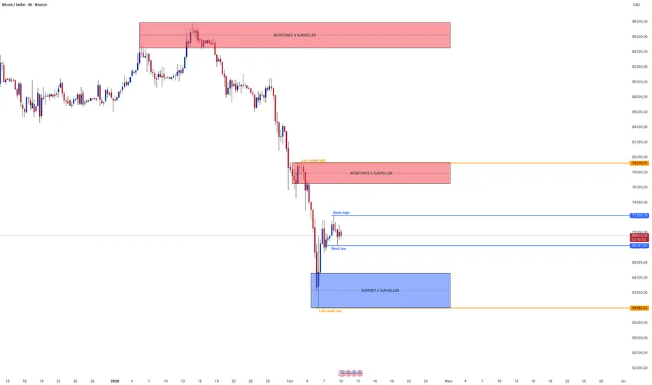 Analyse technique : Le Bitcoin confirme sa "lourdeur" ce mardi matin. Le prix reste scotché sous les 70,000, incapable de transformer ce niveau en support solide. Ce comportement est typique d'une phase de distribution institutionnelle ou d'une hésitation majeure avant un catalyseur de haute volatilité. Bien que le Dollar (DXY) montre des signes de faiblesse sous 97.000, le BTC ne parvient pas encore à en profiter, ce qui suggère une décorrélation temporaire ou un assèchement de la liquidité acheteuse sur les exchanges américains.