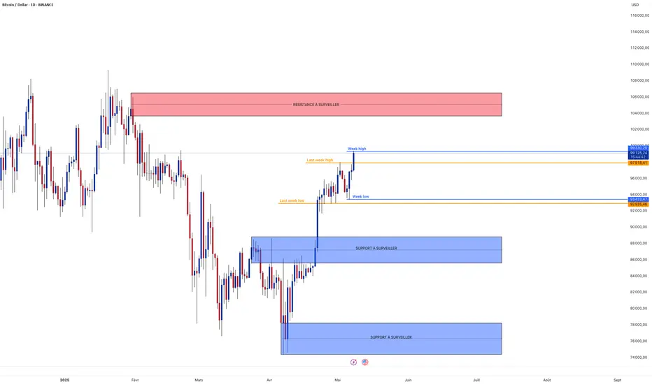 Analyse technique : Le BTC poursuit sa course de hausse atteignant la résistance de 100k ce matin.