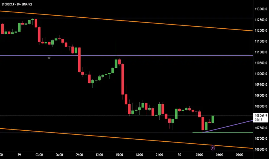 Cependant, on est enfin arrivés à mon niveau attendu toute cette semaine 108000, c'est tombé plus exactement à 107281 (Binance Perp). J'ai bien entendu acheté.