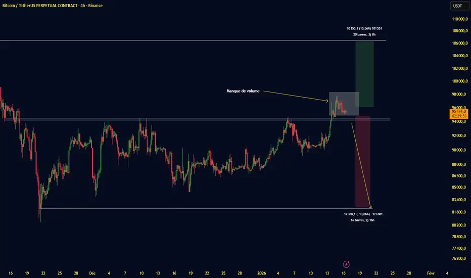 Historiquement, lorsque le prix stagne ou consolide à ce niveau sans volume d’accompagnement, un retournement baissier survient très fréquemment.