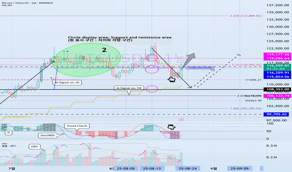 #BTCUSDT1W 차트의 M-Signal 지표가 116259.91 지점에 생성될 것으로 보여 집니다.