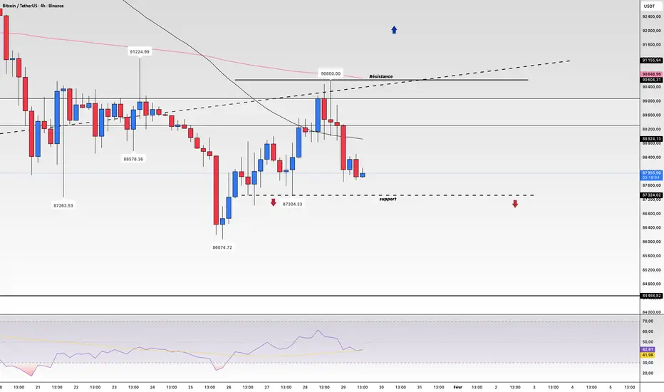 En H4, on identifie un support clé à 87 304.