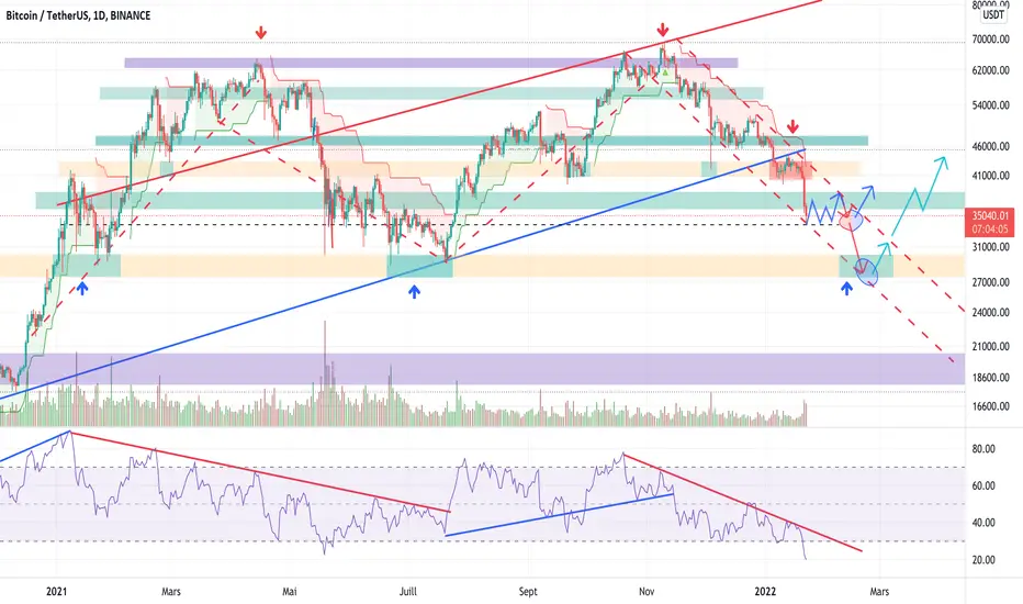 - S'il ne défendent pas ce niveaux, il suffirait de quelques mauvaises news pour que le prix du BTC baisse jusqu'a cette grosse zone de résistance des 19K - 20K.