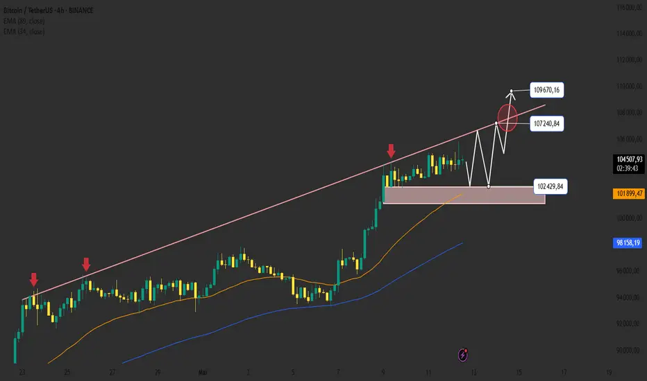Si le BTC parvient à maintenir ce niveau de support, une cassure au-dessus de 107.200 pourrait se produire, ouvrant la voie vers la zone des 109.600. En revanche, si la résistance persiste, le prix pourrait revenir tester l’EMA34 autour de 101.900 avant de tenter un nouveau rebond.