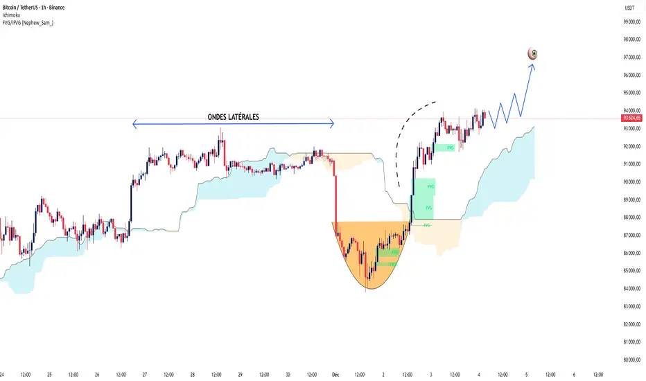Sur une période d'une heure, BTC se maintient fermement au-dessus de Kumo → la tendance haussière est toujours la tendance dominante.