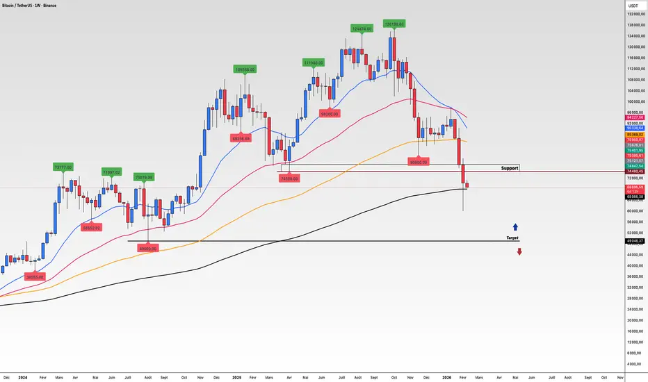 Le Bitcoin a validé la cassure des 74 508 avec une clôture de bougie weekly, ce qui confirme le scénario que j’attendais depuis plusieurs semaines.
