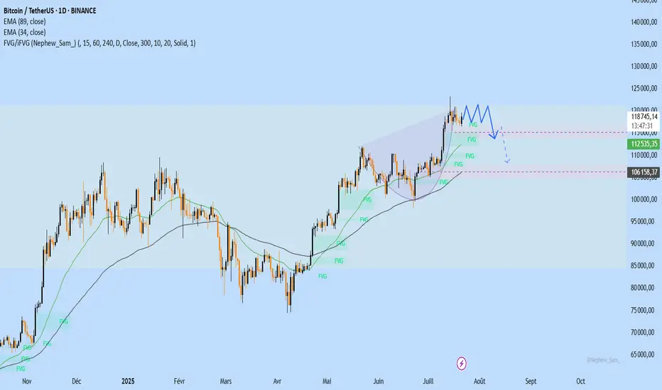 Le Bitcoin oscille autour d'une zone de résistance critique dans un biseau ascendant élargi – un signal classique avant une chute brutale. Les zones FVG non comblées situées plus bas laissent entrevoir un scénario de correction clair.