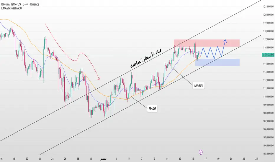 يتحرك بيتكوين على منصة بينانس في قناة اتجاه صاعد قوي، حيث يتداول المتوسط المتحرك الأسي 20 فوق المتوسط المتحرك 50، مما يشير إلى استمرار الاتجاه الصاعد متوسط المدى.