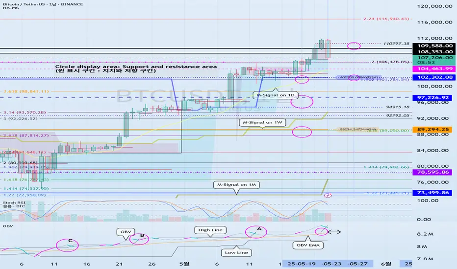 1D 차트의 HA-High 지표가 102302.08 지점에 형성되어 있으므로 이 부근에서 지지 여부가 중요합니다.