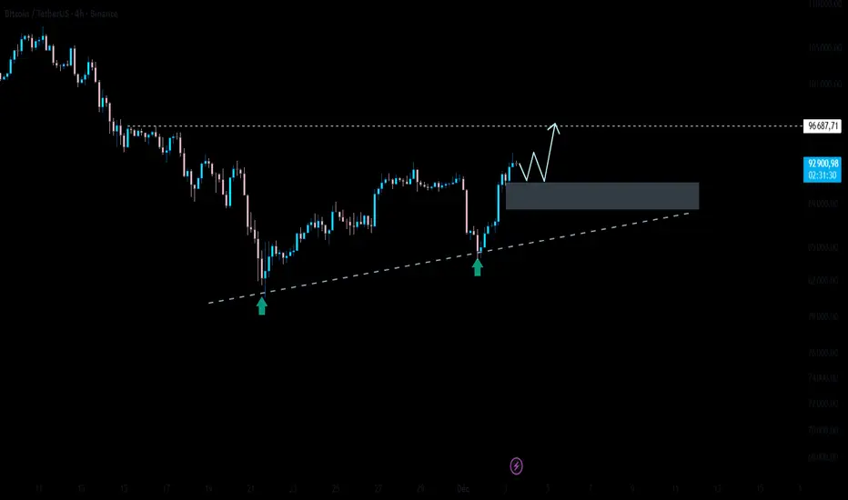 Le scénario que je privilégie à court terme : le prix pourrait osciller autour de la zone 91k–92k pour accumuler davantage, avant de poursuivre sa montée vers 96 500, une zone où le marché a déjà réagi fortement par le passé. C’est un objectif cohérent avec l’élan actuel, surtout que la pression acheteuse reste dominante.