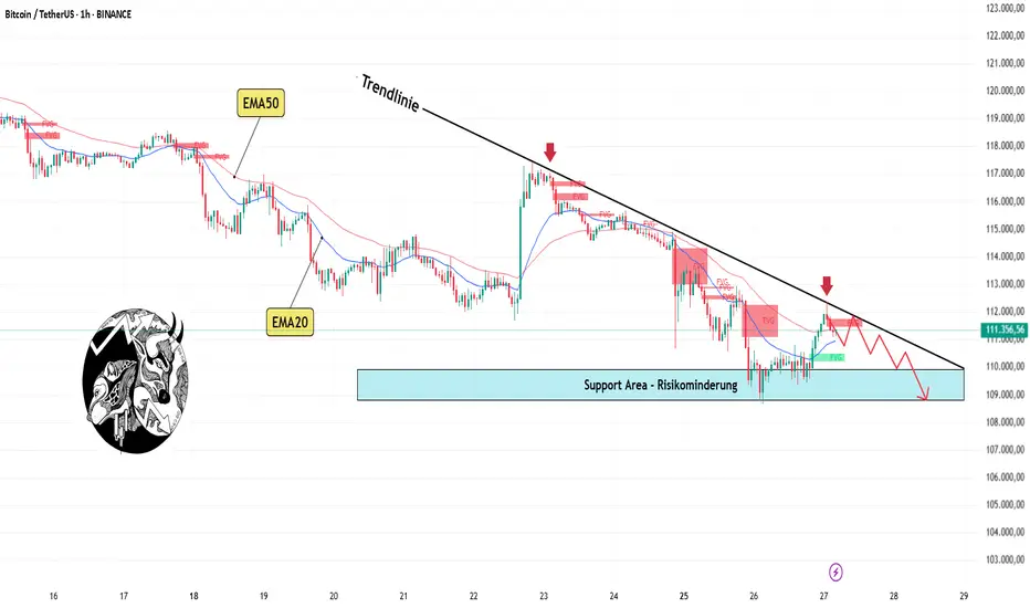 Bitcoin auf Binance schwankt um 111,3 K, noch unter der abnehmenden Trendlinie. Eine Reihe von technischen Wiederherstellungen erscheint, die Preisstruktur ist nicht dem Verkaufsdruck entkommen, was zeigt, dass das Anpassungsrisiko immer noch dominiert.
