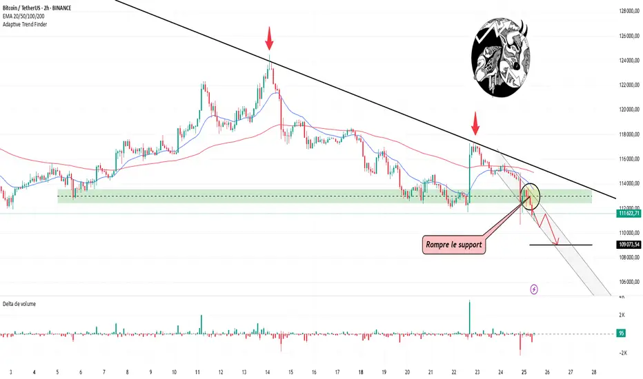 Prioriser le script diminue: lorsque le prix reste inférieur à 112k, le dernier objectif sera de 109k, plus de 107k.