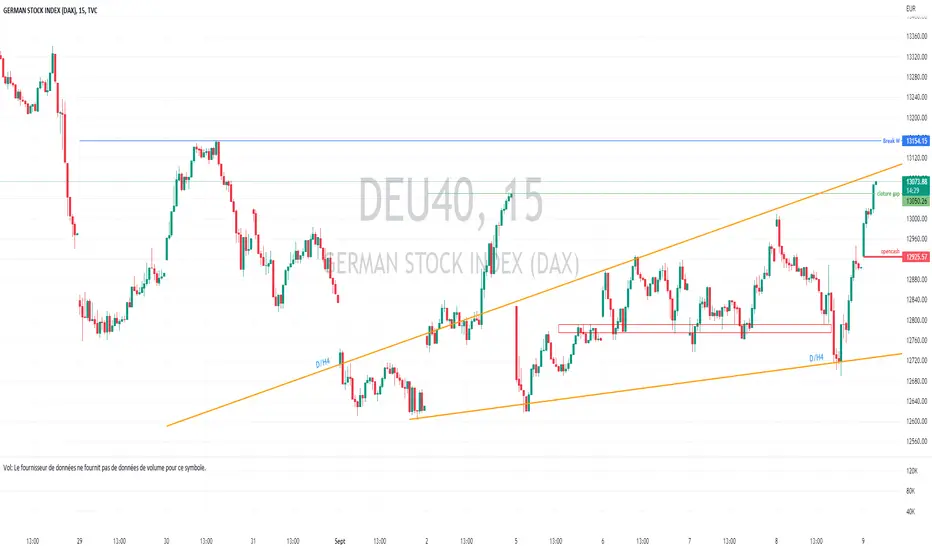 A suivre si réaction ou non sur le gap a 13050, a voir si c'est le rebond attendu ou juste l'effet baisse du dollars + BCE la veille.