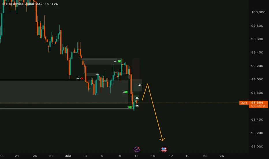 🧲Voilà pourquoi nous avons directement mis en avant une FVG en 4h que le dollar a laissé derrière lui.