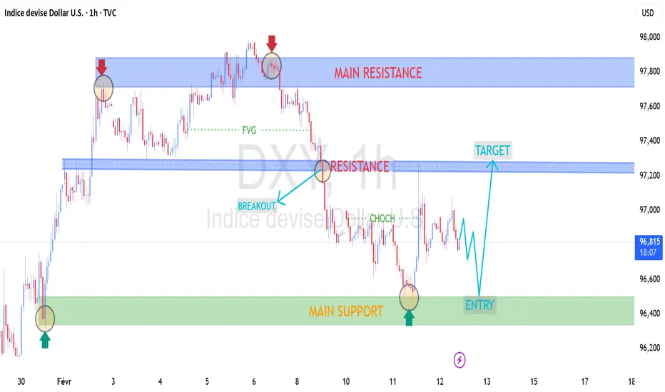 Indice du Dollar Américain (DXY) – Analyse Technique 1H