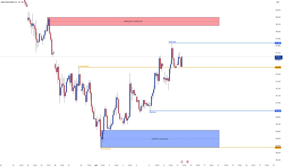 Analyse technique : Le dollar poursuit sa hausse vers la résistance 98.000
