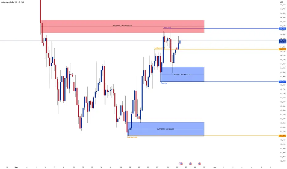 Analyse technique : Le dollar continue sa course de hausse ce matin atteignant à nouveau la résistance de 104.350