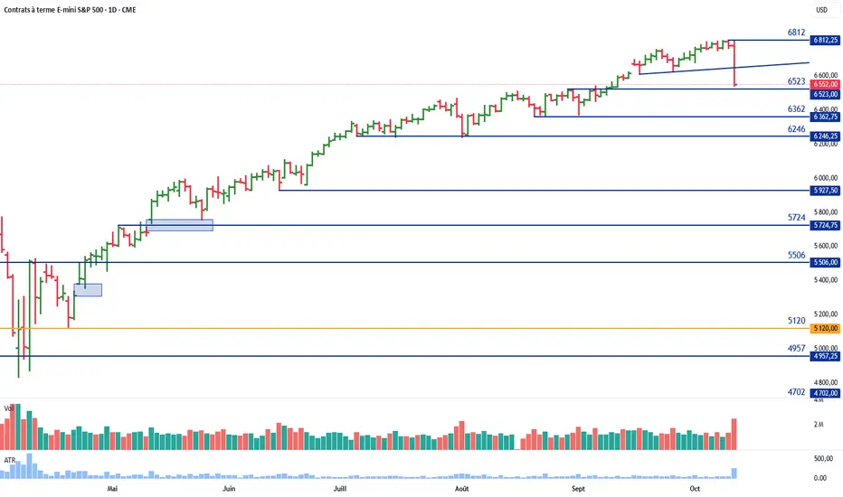 Le SP500 reste très haussier. Je ne suis intéressée que par une position à l'achat. Les niveaux que je surveille pour un possible rebond sont 6523 et 6362.