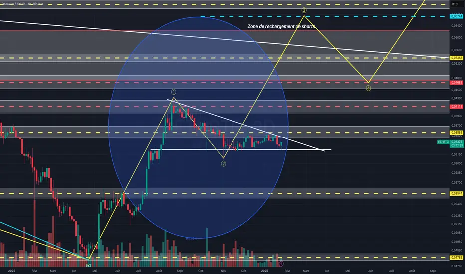 ETH / BTC — Triangle de continuation & démarrage de la Wave 3