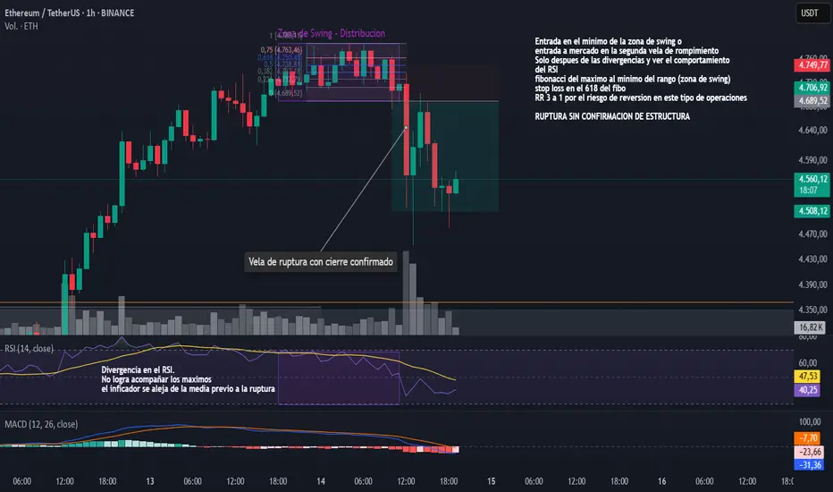 Idea de como tomar el cambio de estructura y las señales de indicadores en una posicion corta que opere la ruptura del patron de distribucion.
