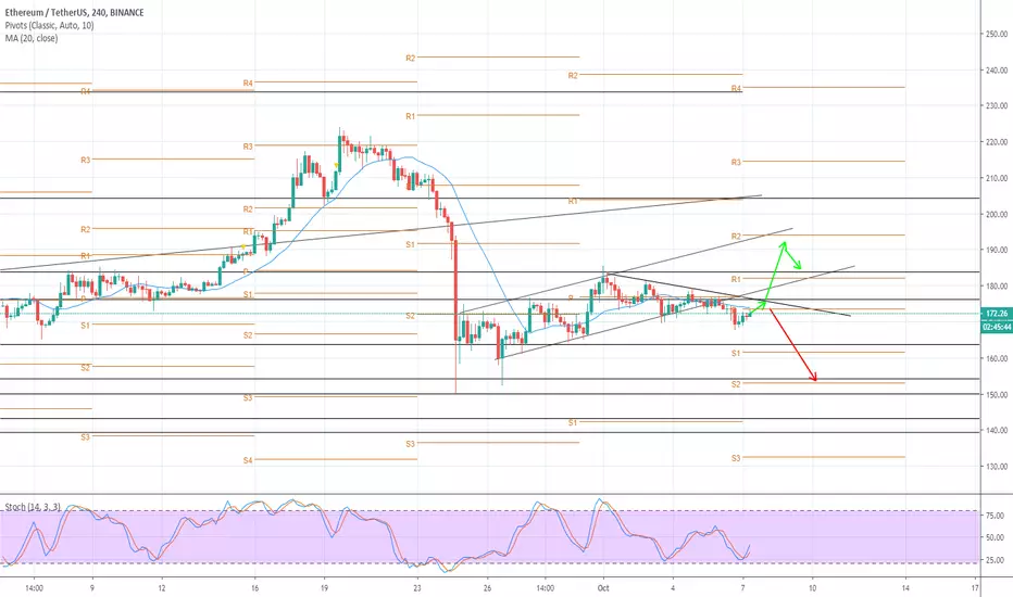 L'Eth est sorti d'un canal de tendance qui s'était dessiné depuis le 24 septembre. Simple faiblesse et alors il doit revenir sous peu dans ce canal mais s'il ne fait que le tester sans entrer (178) il risque retomber plus bas avec un premier palier à 164, voire aller chatouiller les 154