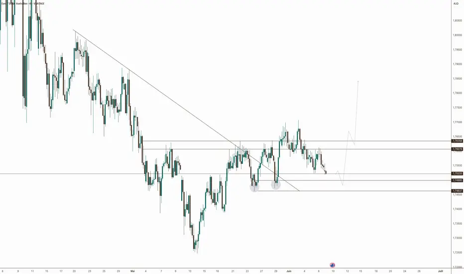 Le scénario haussier projeté anticipe une cassure des résistances intermédiaires autour de 1.7607 et 1.7635, en direction des sommets précédents. La structure technique laisse place à un redémarrage impulsif si les acheteurs confirment leur présence autour du support identifié.