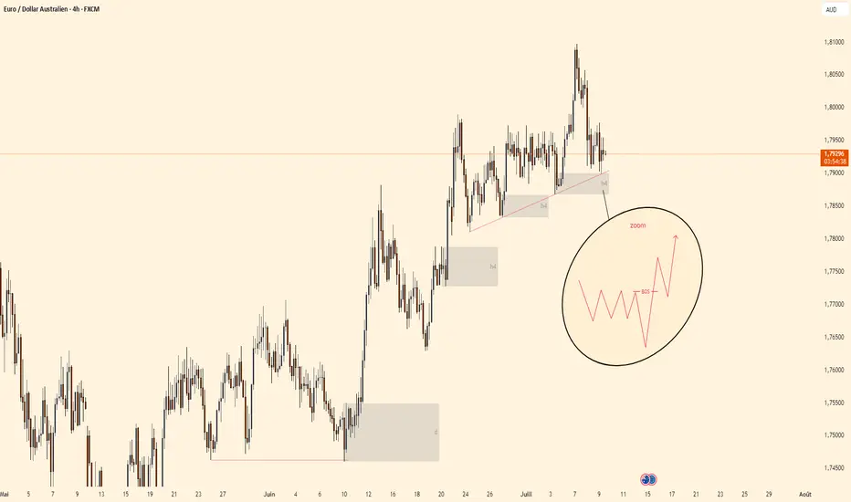Une fois la liquidité prise, j'attends dans la zone H4 une confirmation (accumulation ou un BOS) avant d'entrer en position, comme schématisé sans la bulle.