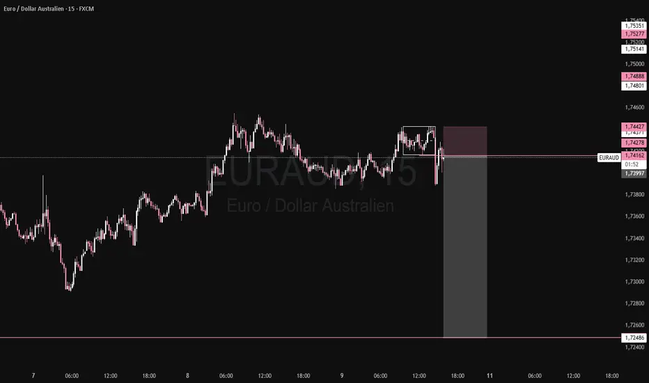 Analyse sur EURAUD en UT 15MIN. Le prix est en retracement haussier dans un mouvement globalement baissier.