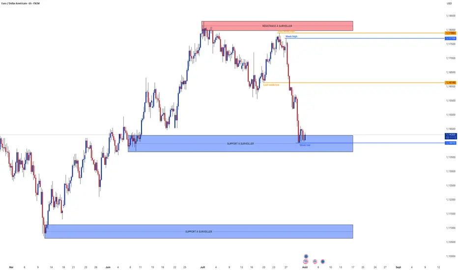 Analyse technique : Tant que l’EUR/USD préserve le support 1,1435-1,1400, un rebond technique pourrait viser 1,1615 puis la zone de résistance 1,1770-1,1800, tandis qu’une clôture nette sous 1,1400 exposerait la paire à une poursuite baissière vers 1,1100.