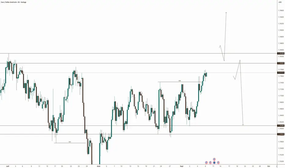 * Cibles : extension vers la zone haute montrée par ton schéma (1,19x), avec étape intermédiaire 1,1860–1,1880.