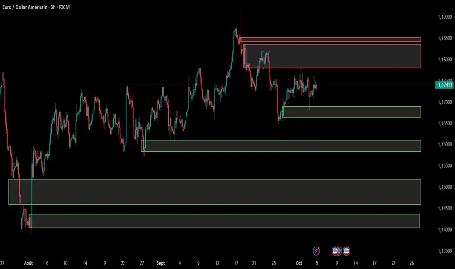 1. Ma première zone est entre 1,16915 - 1,16630, on peut y trouver une OB intéressant en h3 et h2 + de la FVG en h4, h3, h2 et h1, et l’EURUSD a déjà rebondit dans cette zone.