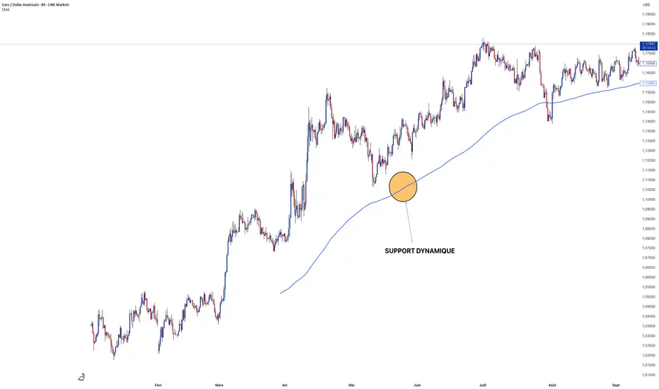 💡 Astuce : Combine l’analyse des supports dynamiques avec l’action du prix et des volumes pour repérer les meilleures opportunités.