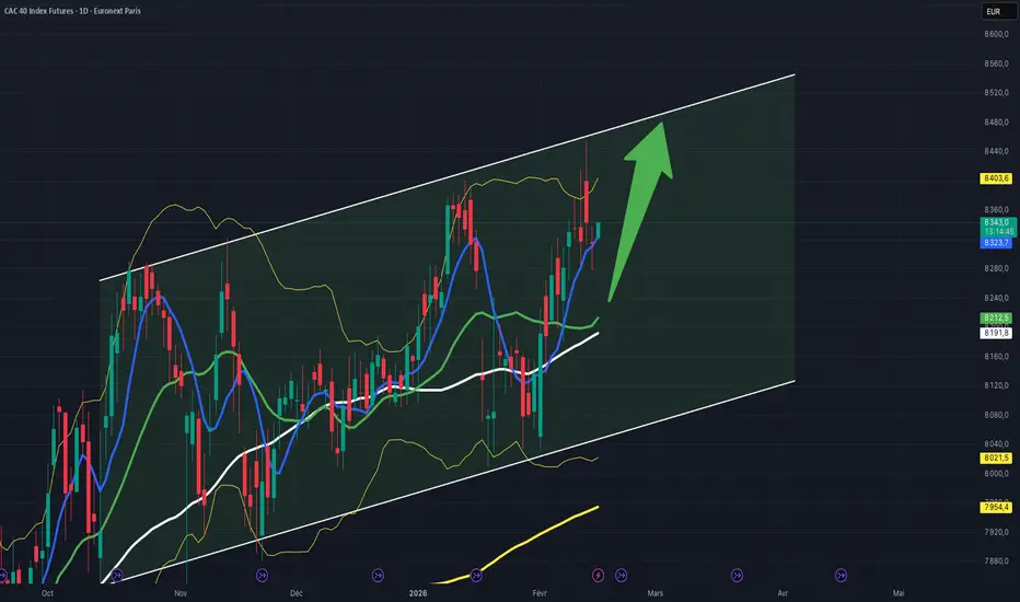 Après des années de léthargie on assiste aujourd'hui à une très bonne tenue du CAC40, il évolue dans un canal haussier daily, tout repli vers ce bas de canal est une opportunité pour acheter et viser le haut de canal.