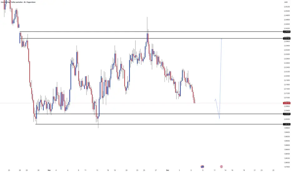 Sur ce graphique du GBP/AUD en H4, le prix teste actuellement le support critique situé à 2.00256.