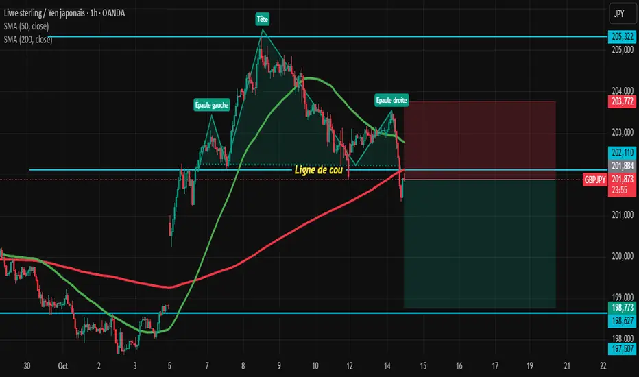 Prise de position en short. Après la cassure du ligne de cou, sur la figure chartiste.