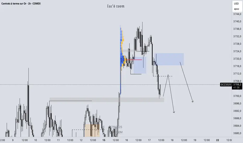 Objectif 1 : retour vers les 3720 – 3730 Futures, première zone de liquidité au-dessus.