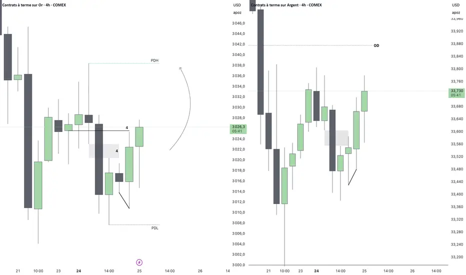 - Le retracement dans la FVG H1 a déclenché une SMT haussière avec Silver