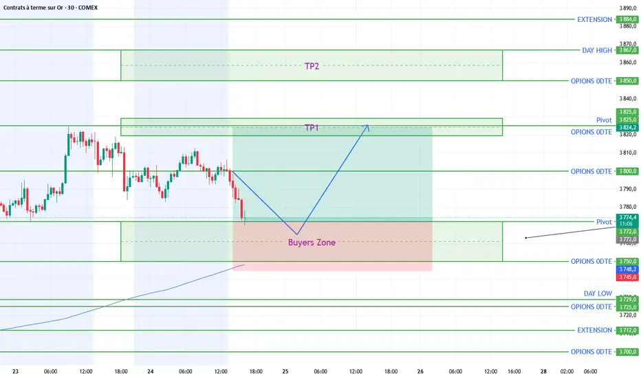 Notre zone d'achat 3722 - 3750 a une très haute probabilité de tenir grâce a nos niveaux dealers, la volatilité GVZ et la macro économique.